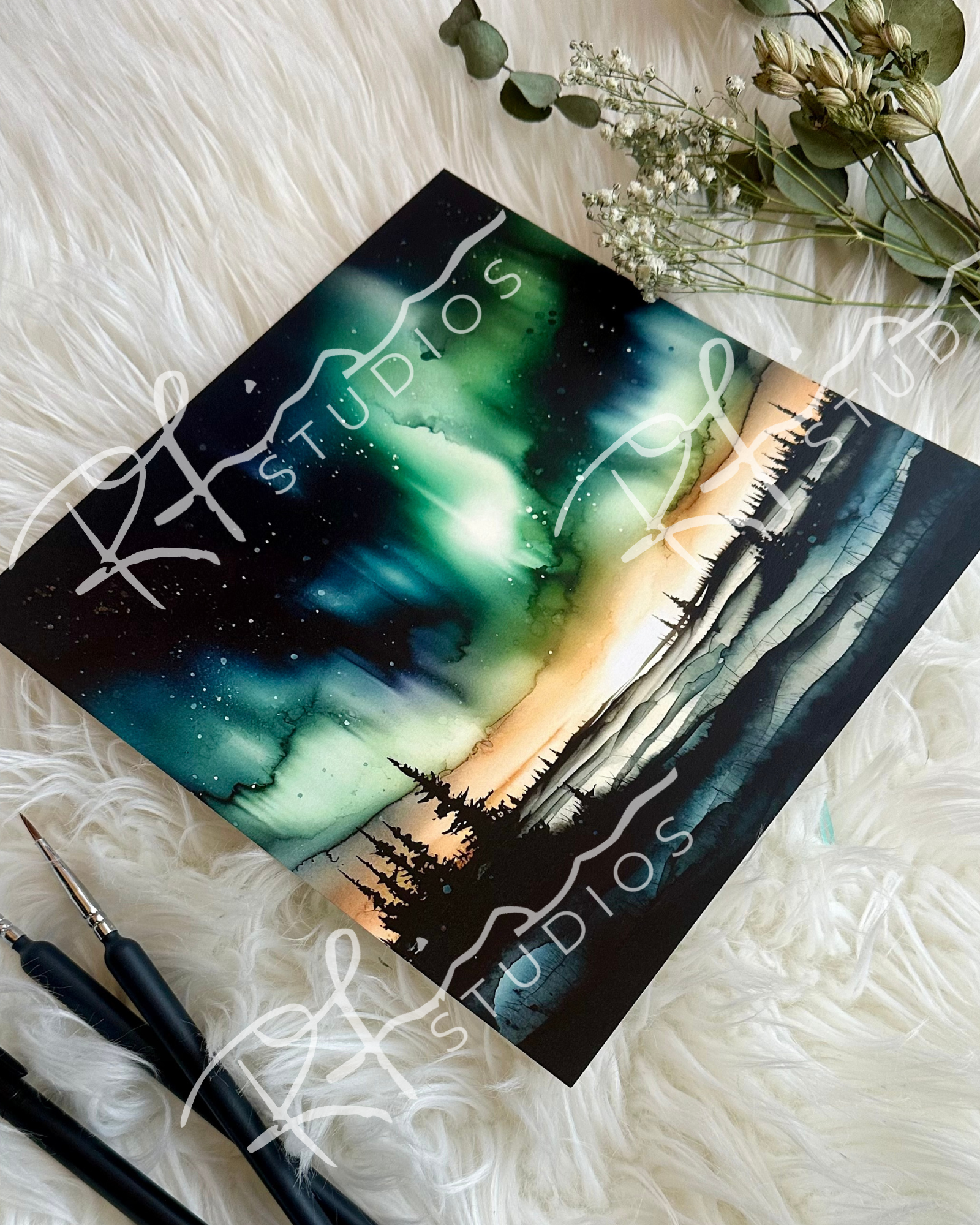 Alcohol inks, watercolour paints, and acrylic ink/paint all come together with the help of some digital magic to bring you this piece!