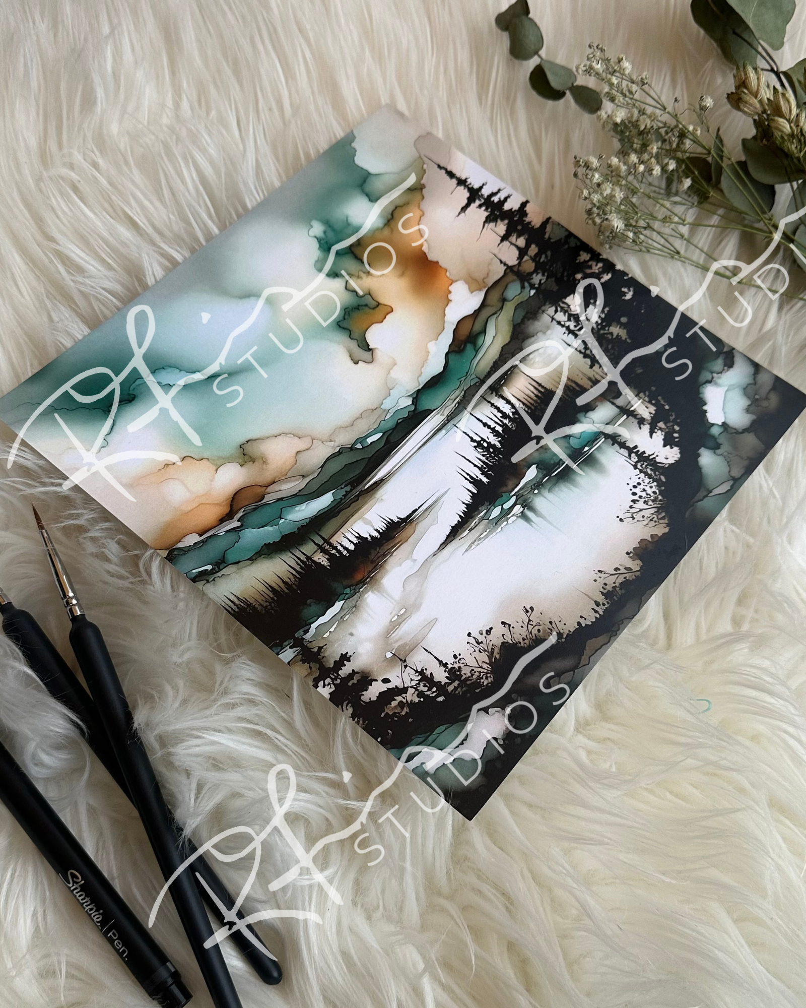 Alcohol inks, watercolour paints, and acrylic ink/paint all come together with the help of some digital magic to bring you this piece!