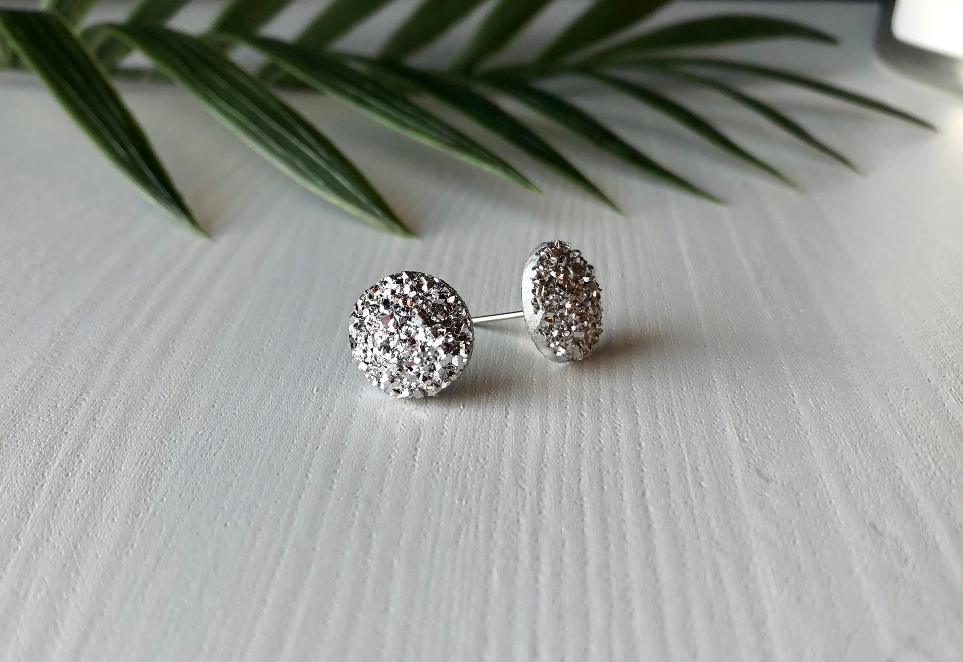 Bright Silver Sparkle Stud Earrings - 12mm on Stainless Steel Posts.