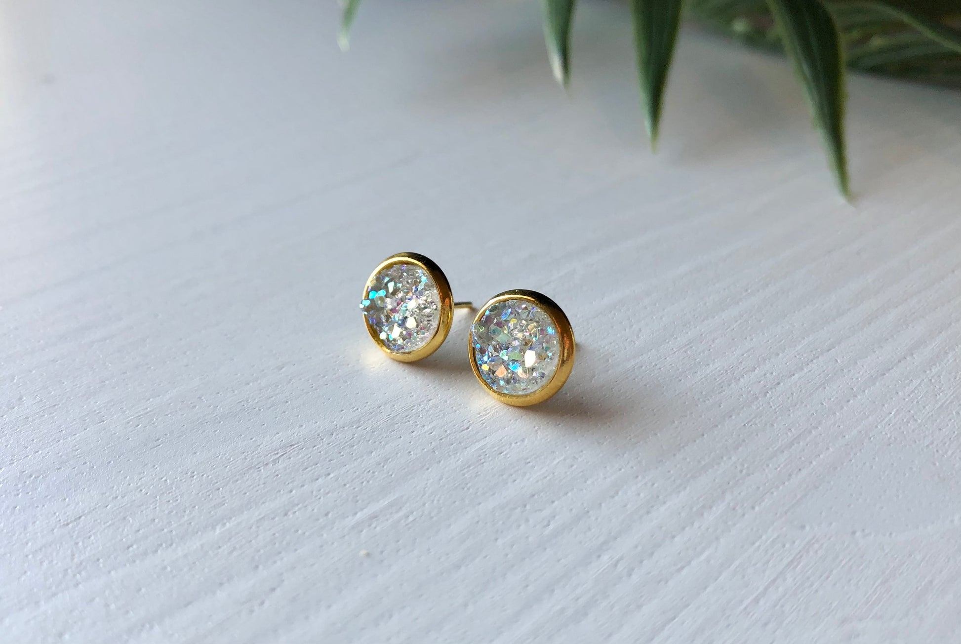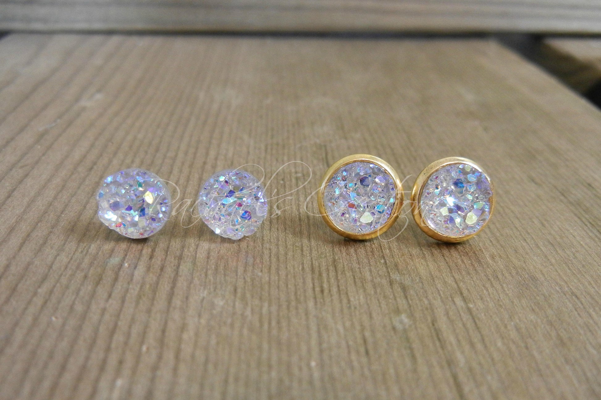 Crystal/Diamond Druzy Stud Earrings - 8mm Stone on Gold