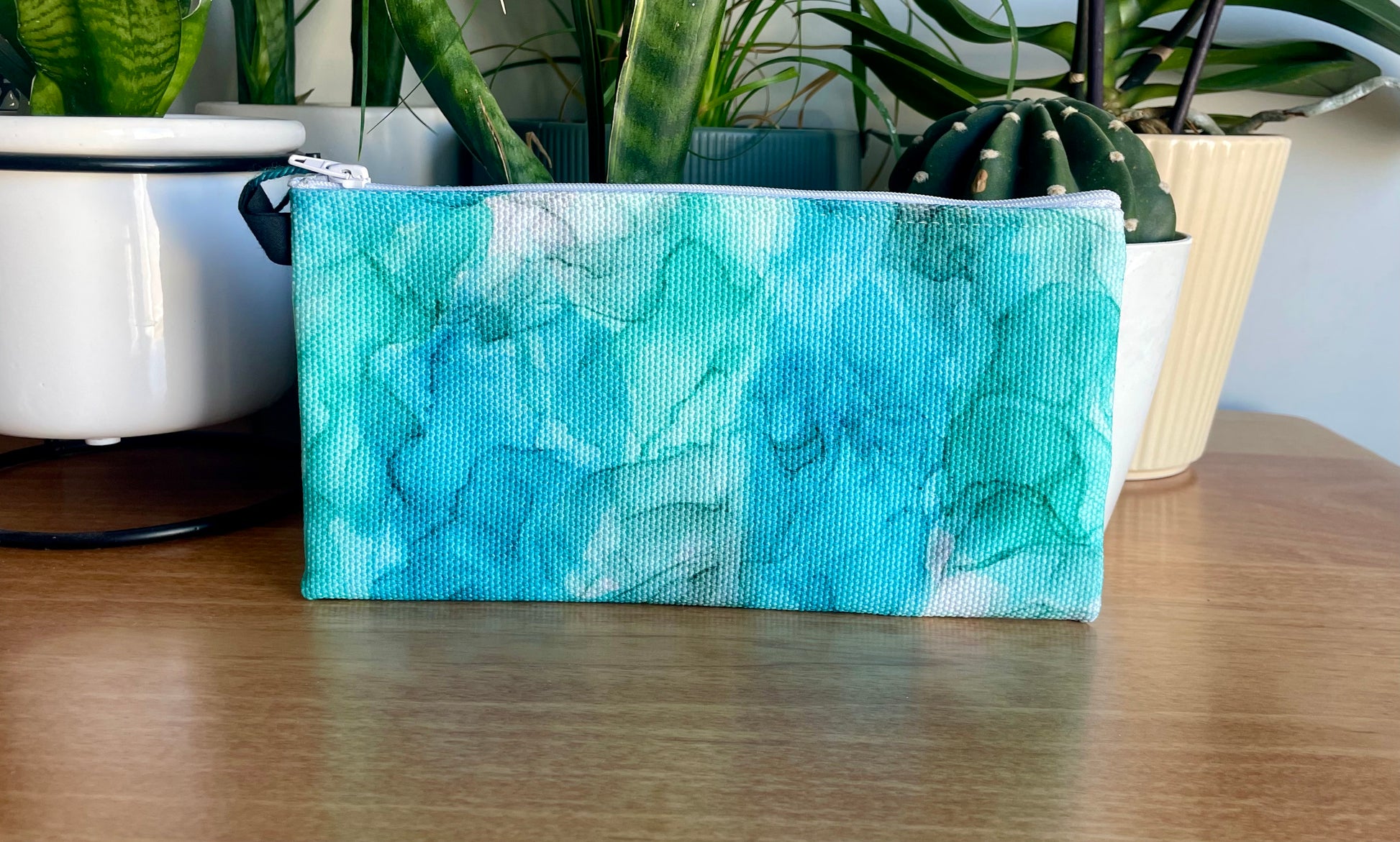 These are approximately 9” x 4” in size! Because the fabric is hand-cut and sewn, some size variation is normal and to be expected! Please note that accessory bags do not come with denim pockets on the inside like the beauty bags do.