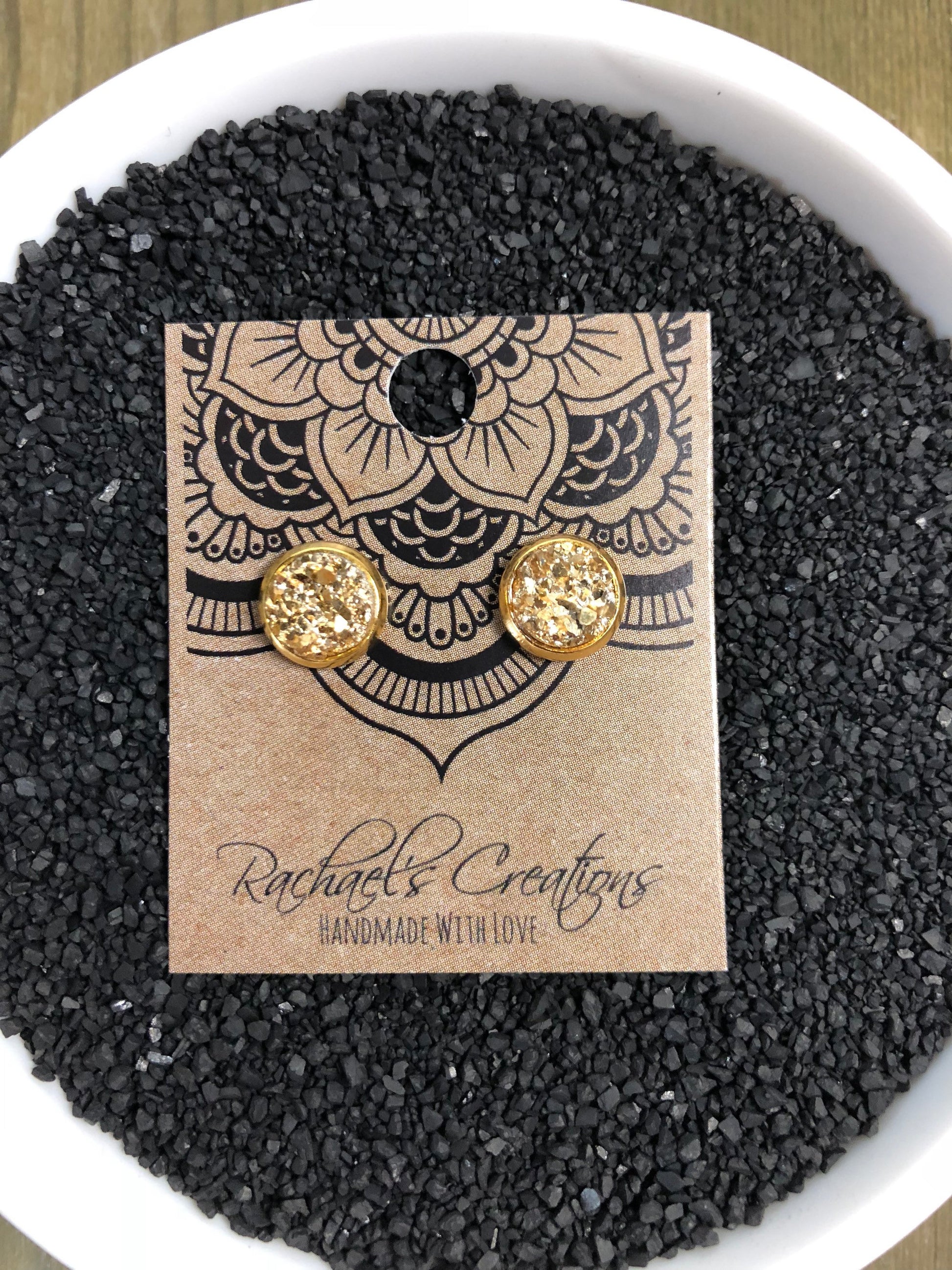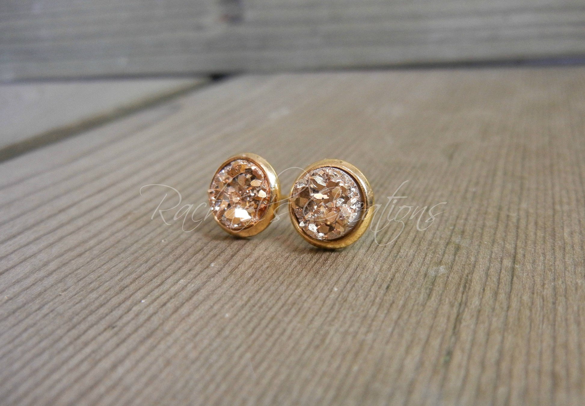 Gold Druzy Stud Earrings - 8mm Stone on Gold
