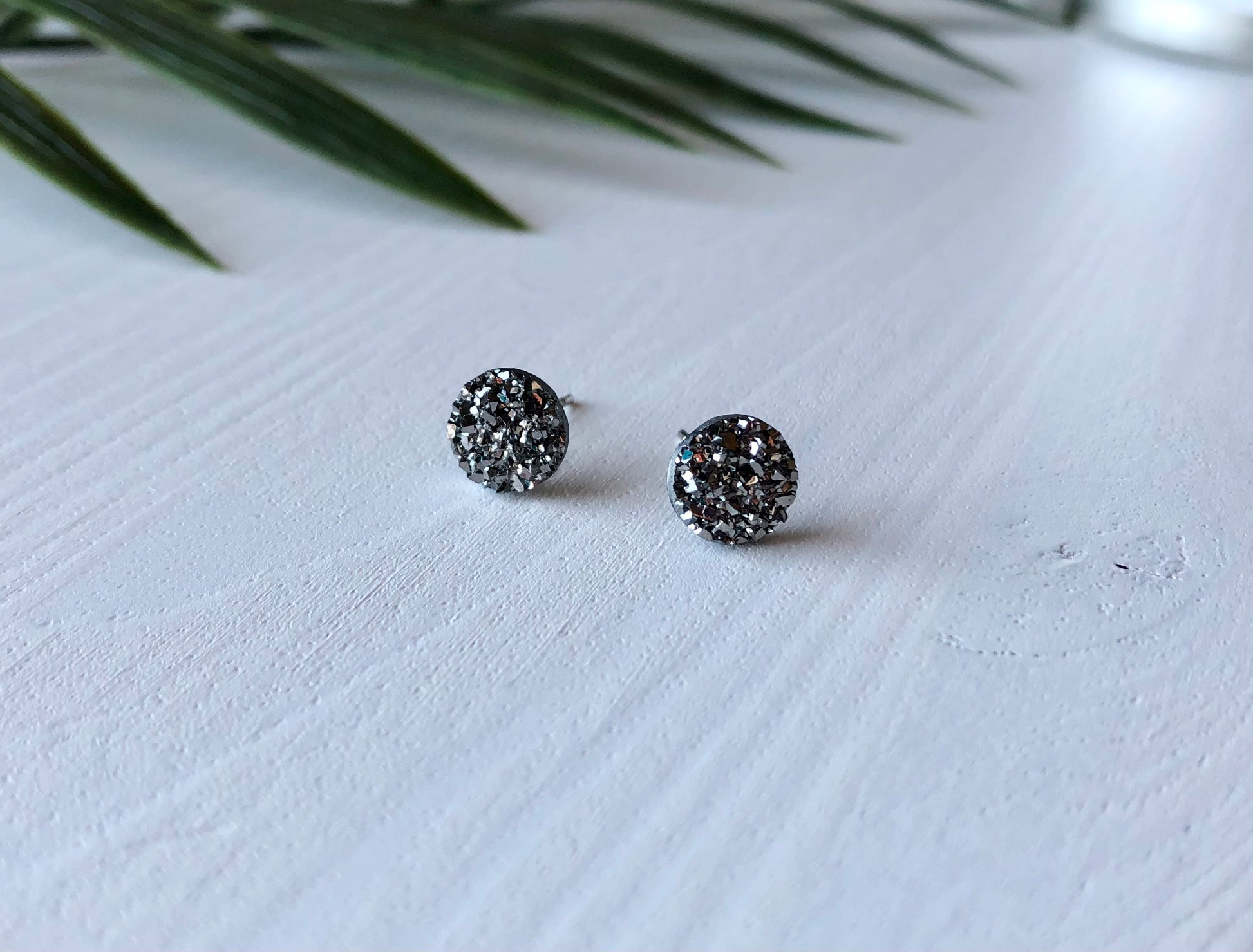 Gunmetal Sparkle Stud Earrings - 8mm on Surgical Grade Stainless Steel