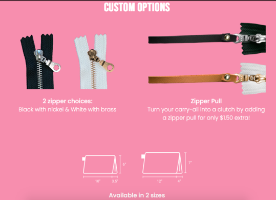 - Zipper pull: Turn your bag into a clutch by adding a zipper pull for only $1.50!