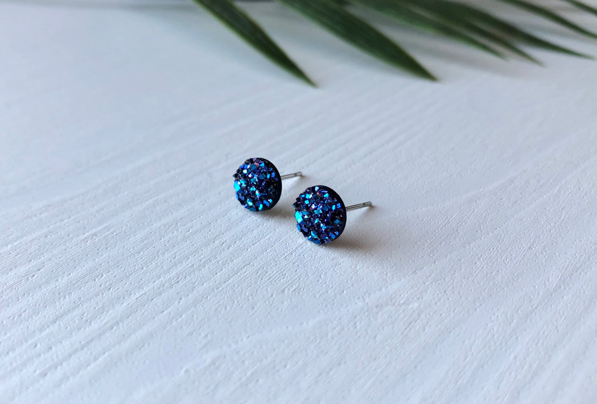 Midnight Purple Sparkle Stud Earrings - 8mm on Surgical Grade Stainless Steel