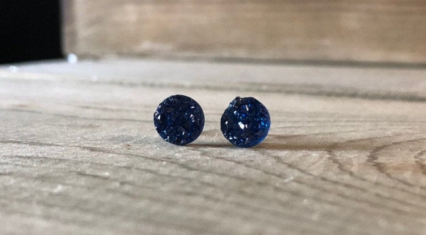 Navy Druzy Stud Earrings - 8mm on Surgical Grade Stainless Steel