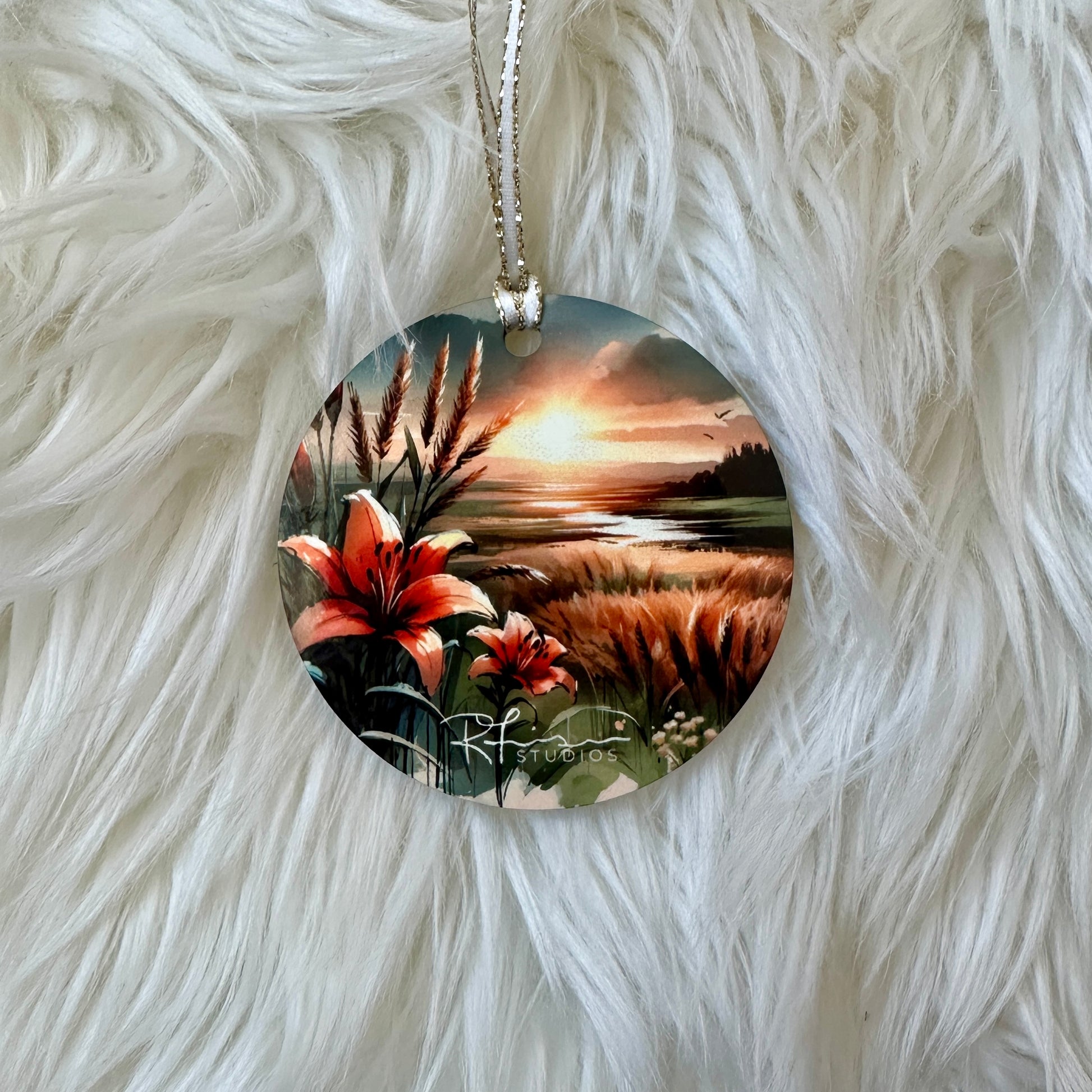 Each ornament features a print of one of my pieces, from the Land of Living Skies Collection. Created using a mash up of alcohol ink, water colours, acrylic paint and digital editing software, these prints will last forever!