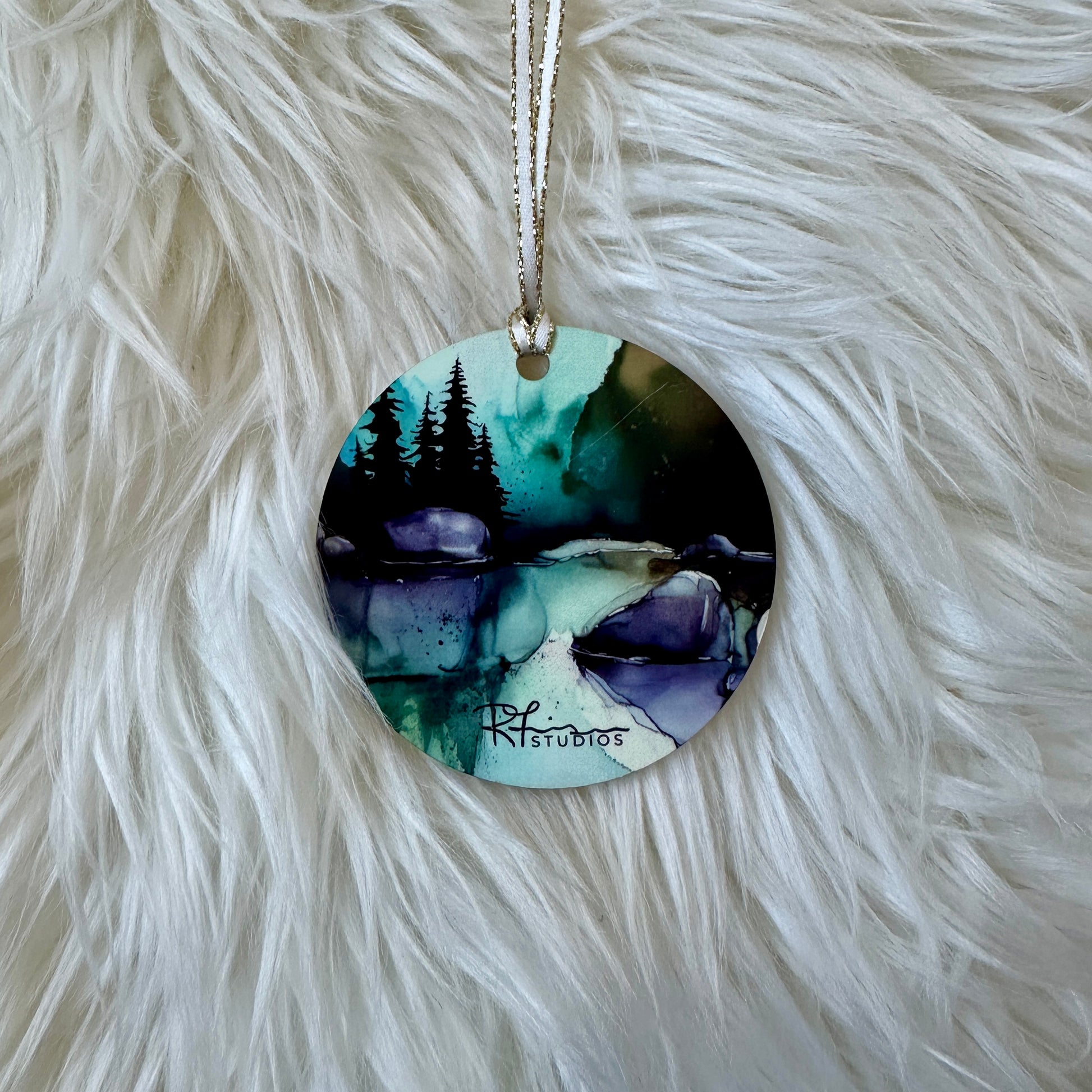 Each ornament features a print of one of my pieces, from the Land of Living Skies Collection. Created using a mash up of alcohol ink, water colours, acrylic paint and digital editing software, these prints will last forever!