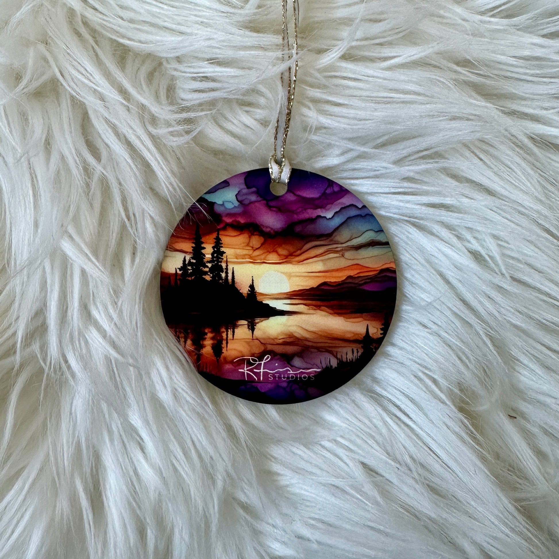 Each ornament features a print of one of my pieces, from the Land of Living Skies Collection. Created using a mash up of alcohol ink, water colours, acrylic paint and digital editing software, these prints will last forever!