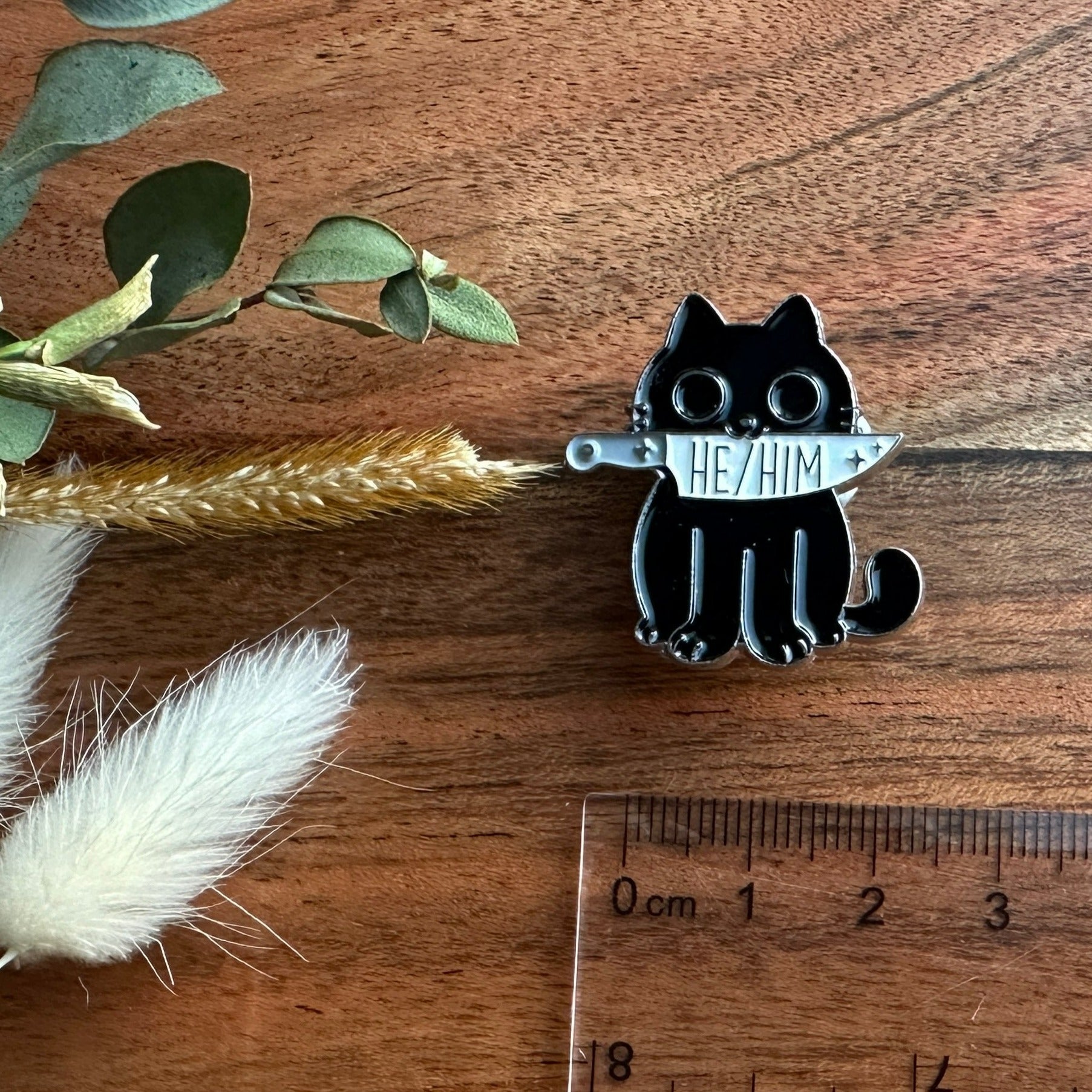 Pride Pin - Pronoun Pin - Cat - HE/HIM