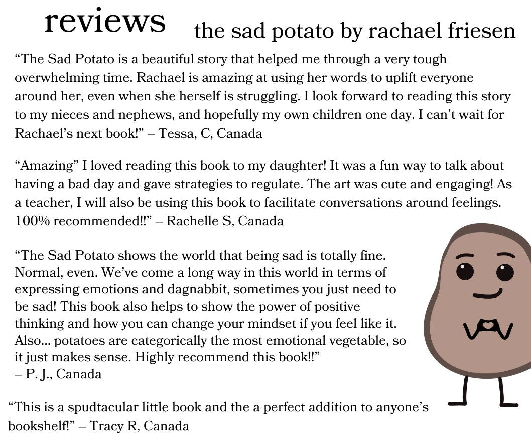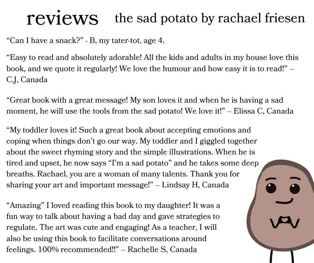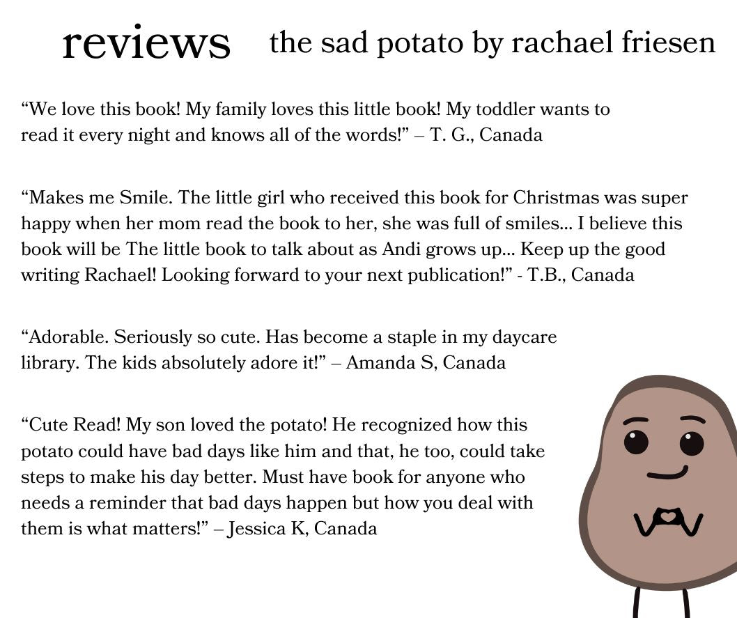 The Sad Potato is a charming and funny 30-page picture book with playful rhymes, potato puns, and delightful illustrations!