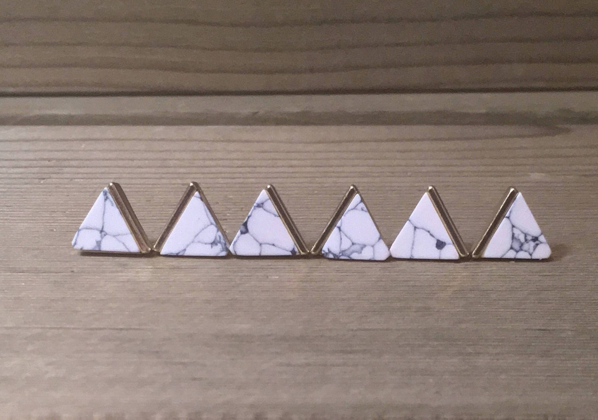 White Marble + Gold Triangle Stud Earrings
